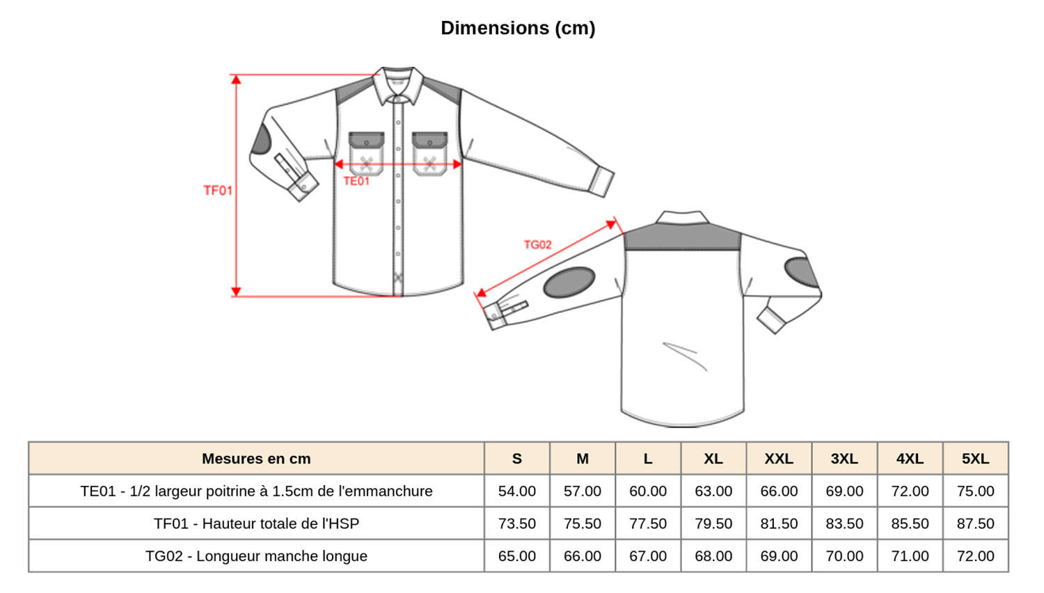 Le bas du vêtement est arrondi pour un porté confortable, tandis qu'un lien d'accrochage intérieur en chevron est intégré au col. Cette chemise est disponible du S au 5XL, permettant d'équiper vos équipes de manière homogène.