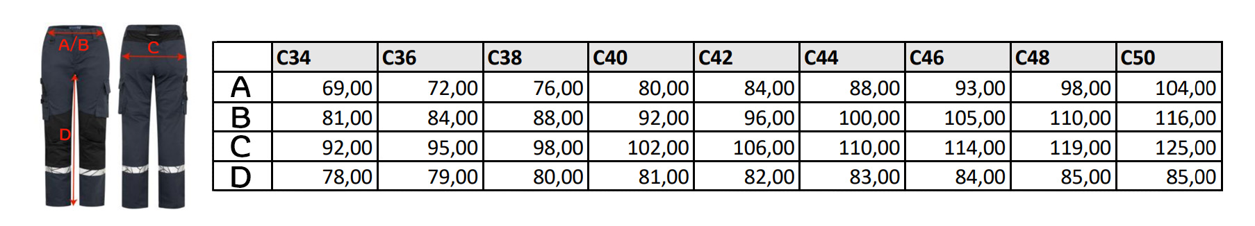 Conforme à, la norme EN 17353 pour une meilleure visibilité,, ce pantalon est disponible du 34 au 50.
