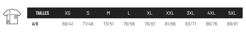 Disponible dans une large gamme de tailles, du XS au 5XL, ce modèle s'adapte à toutes les morphologies. Il constitue un support publicitaire textile efficace, simple et largement diffusé pour renforcer la visibilité d'une marque.